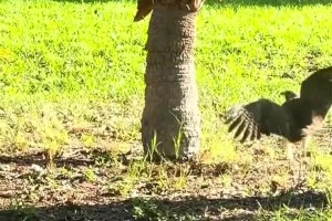 松鼠和鹰上演顶级“卡视野,“秦王绕柱”让一只松鼠玩明白了
