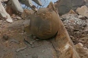 挖机师傅挖出一块特别圆的石头