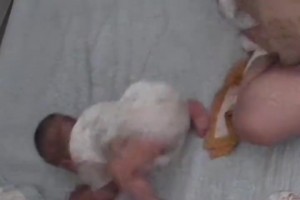 睡梦中的宝宝突然蹬腿翻身,妈妈以为宝宝要醒了