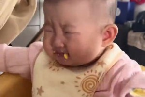 孩子第一次吃蛋黄羹,吃完后直接哆嗦了一下 手舞足蹈